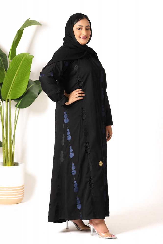 • تطريز :تطريز العبايه كامل مع خرز اسود في الامام