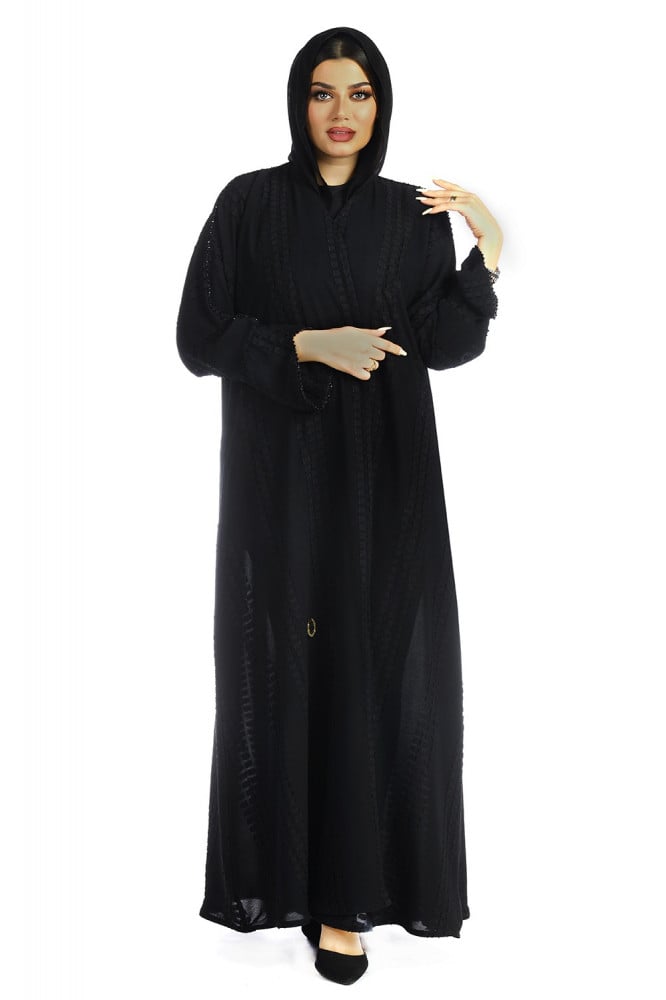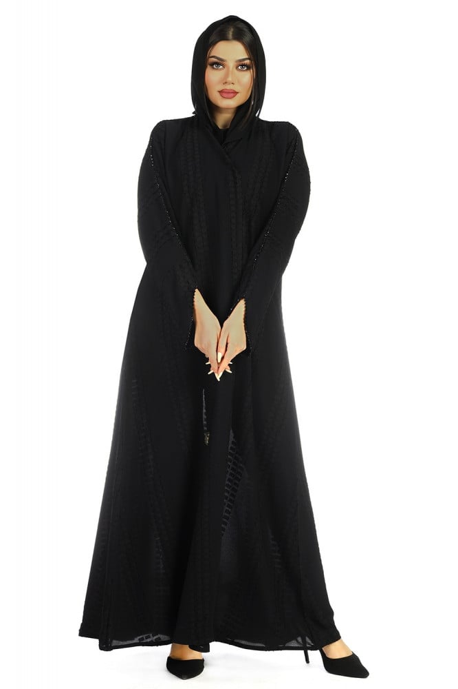 عباية فراشة سوداء منسوجة من الكريب الطايح