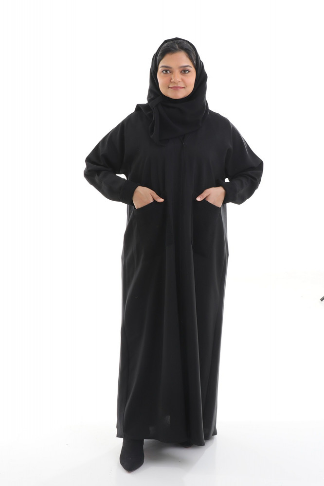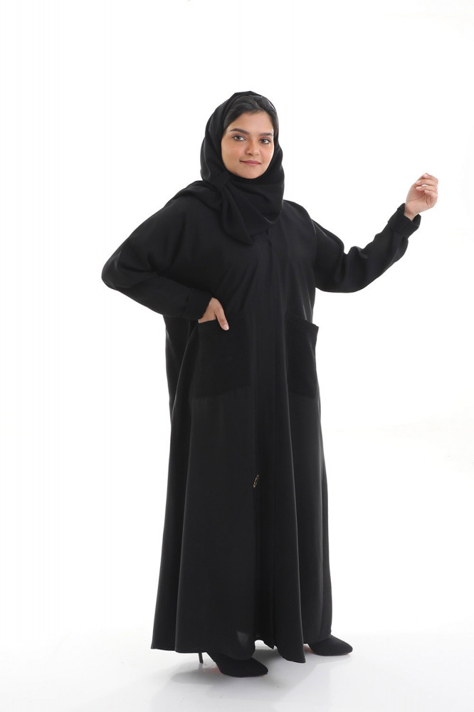عبايه منسوجة من قماش الصالونا الكوري الأصلي مع طرحتها.