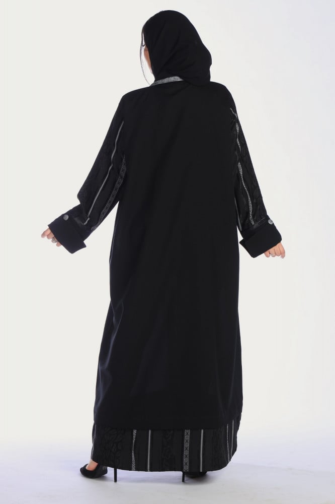 - اللون الأسود الكلاسيكي يمنحك هذه العباءة إطلالة جذابة وأنيقة.