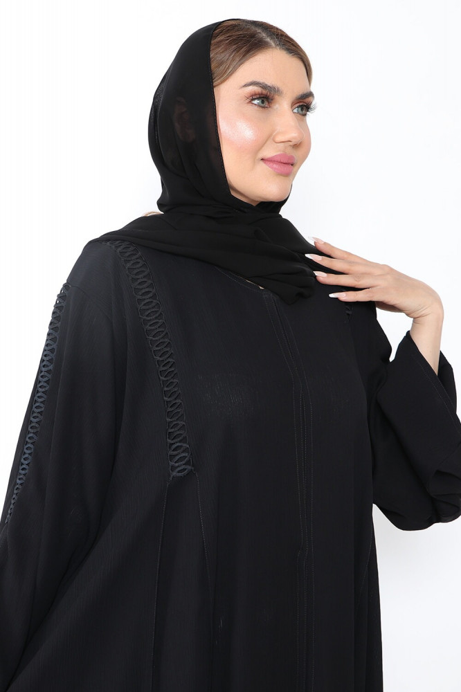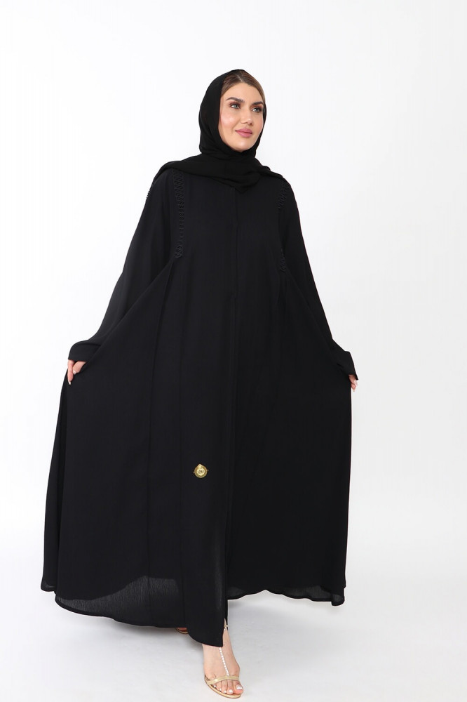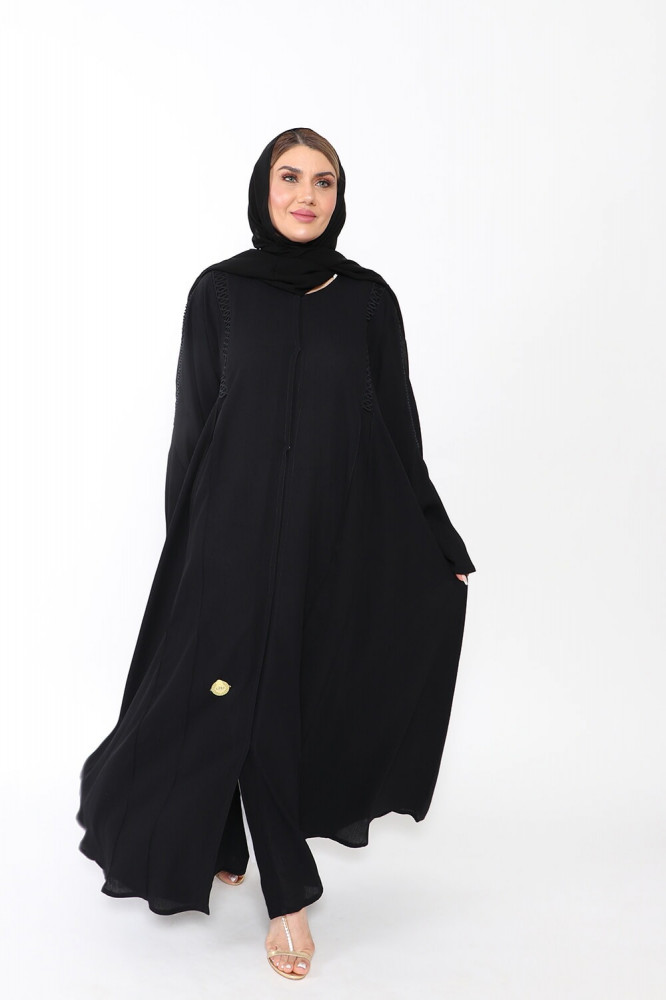 - العباية مزينة بتطريز اسود في الكم والامام والخلف يعطيها مظهر رائع.