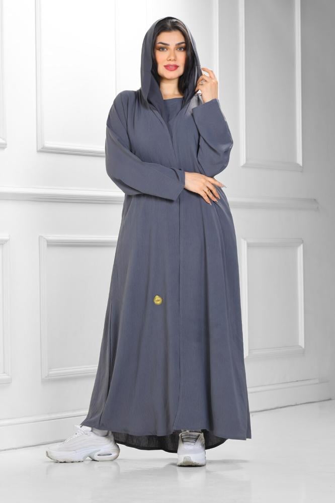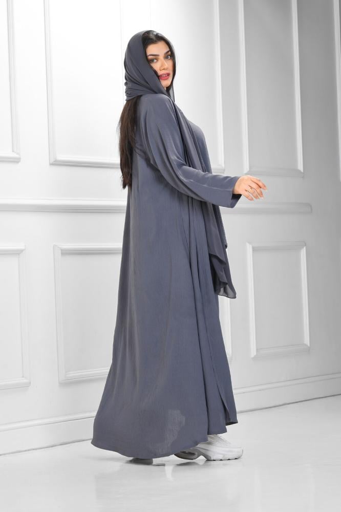 - عباية رصاصية عصرية مصممة بقصات مستقيمة تمنح القوام رشاقة وتناسقاً مثالياً.