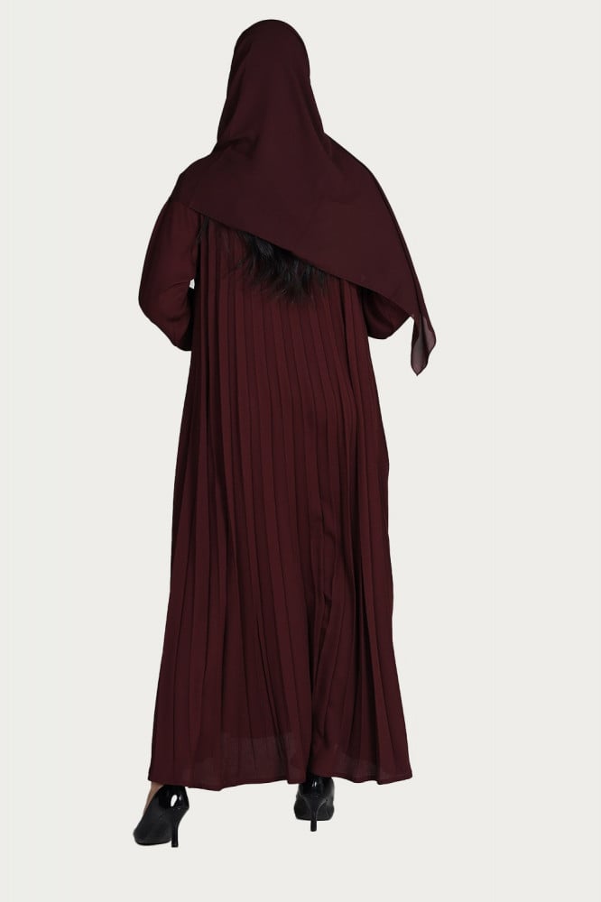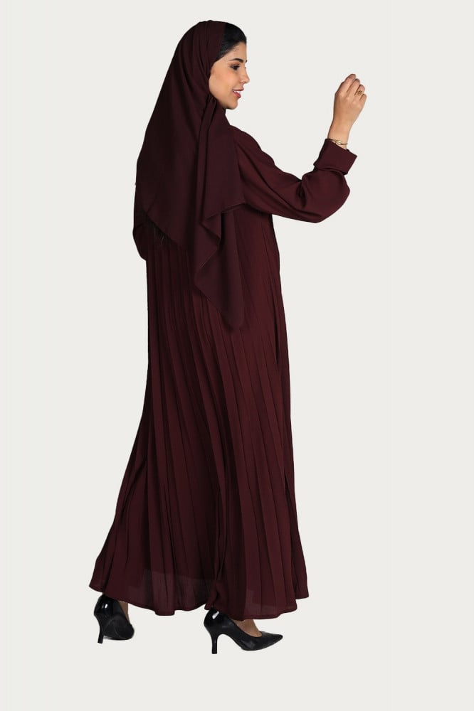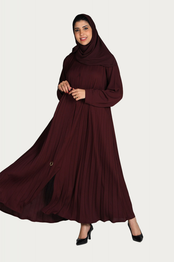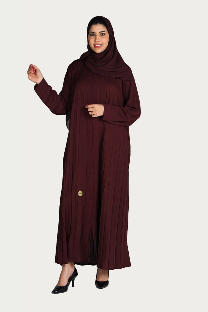 - تتميز العباية بلونها العنابي المميز بتصميمها العصري والأنيق حيث تتميز العباية بقماشها المكسر كامل الذي يعطيها مظهرًا مميزًا.