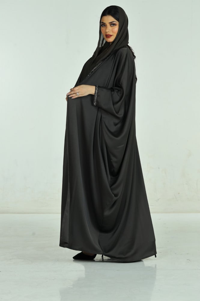 - العباية مزينة بتفاصيل كلفة مصنوعة بعناية ودقة على الصدر والأكمام، مما يزيد من روعتها.