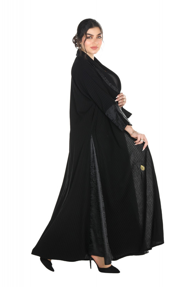 هذه هي مواصفات أفضل عبايه قلاب كلوش مصنوعة من قماش الكريب المقلم الأسود متوفرة في متجر عبايات روزا المتخصص في صناعة العبايات السوداء الرائعة بمختلف التصميمات التي تتلائم مع جميع الأذواق مثل: عباية قلاب كريب مقلم أسود.