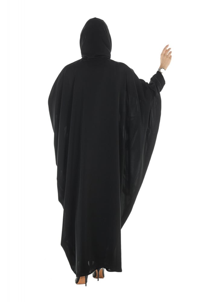 عباية لف سوداء واسعة مع تطريز في الكم والأمام