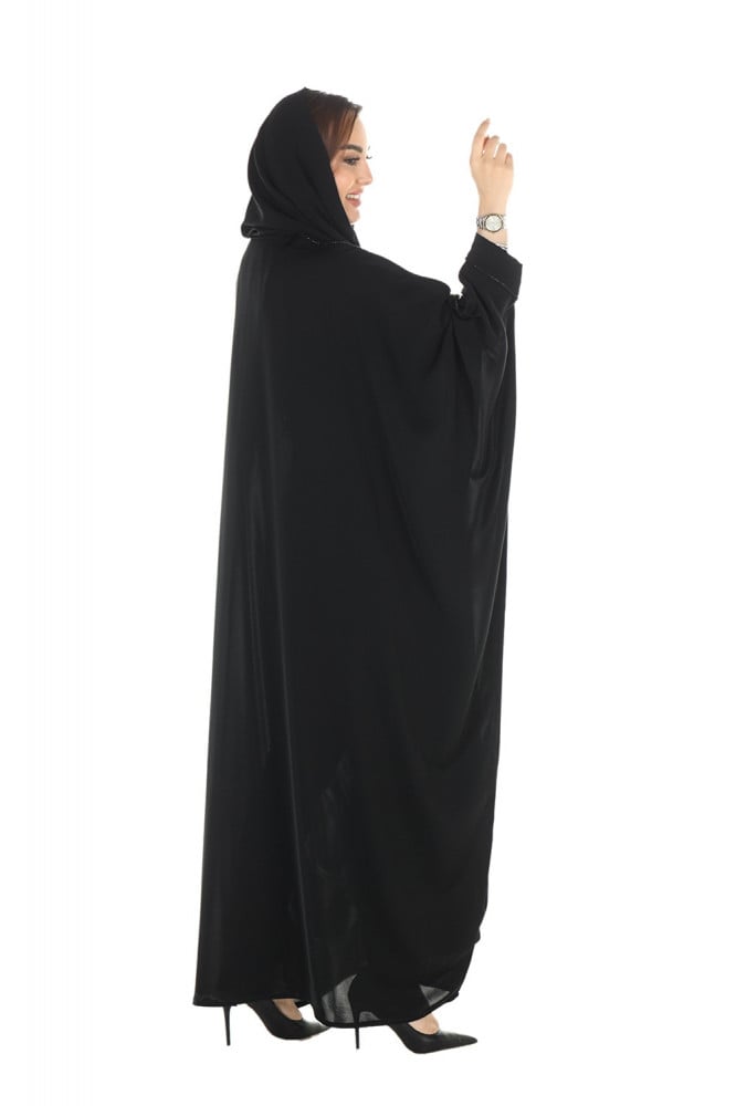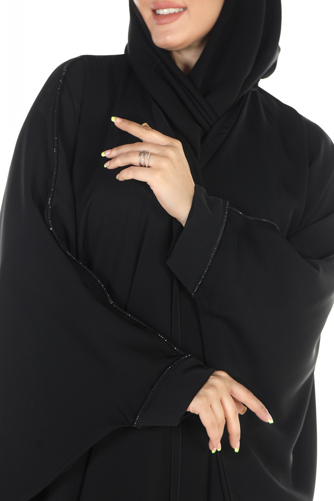 - تم تزويد العباية بخط كريستال أسود في الكتف والكم، والذي أضاف اللمسة المميزة والفريدة من نوعها للعباية.