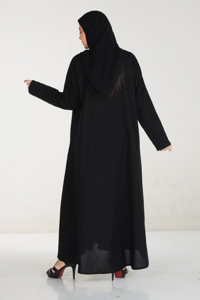 - العباية منسوجة من قماش كريب فاخر المتين، مما يضمن جودة العباية، ومناسباتها للاستخدام اليومي مع الحفاظ على مظهرها.