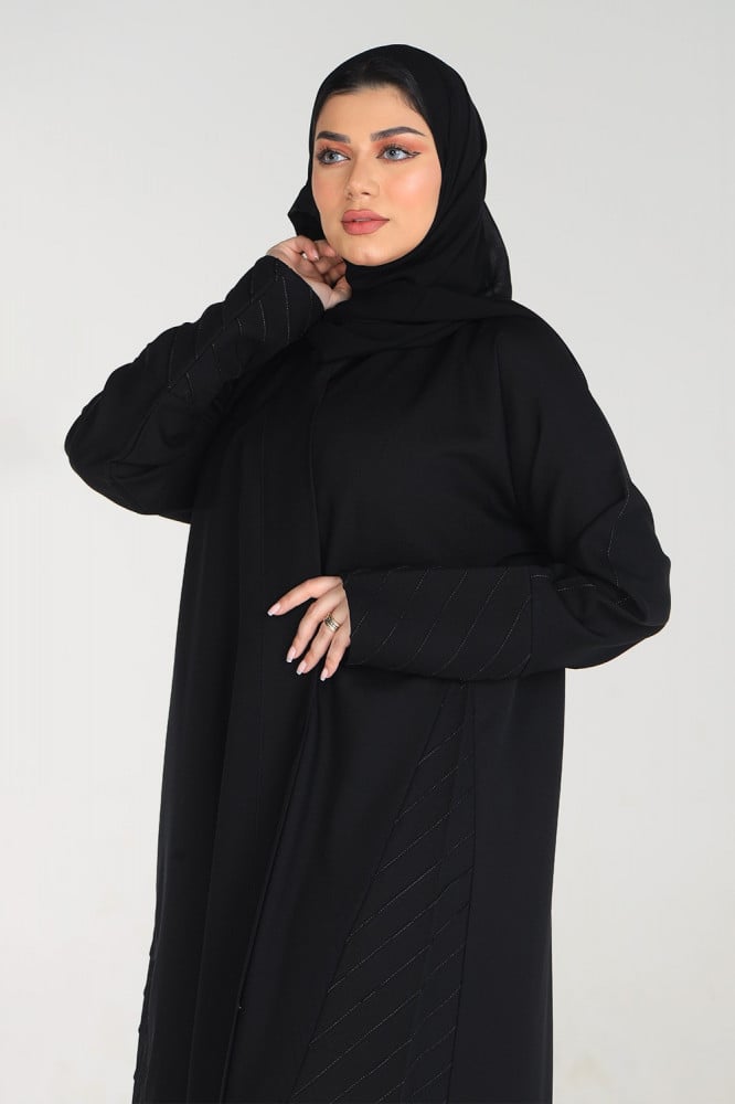 مواصفات عباية سوداء بياقة كاملة وقفلة زرارات