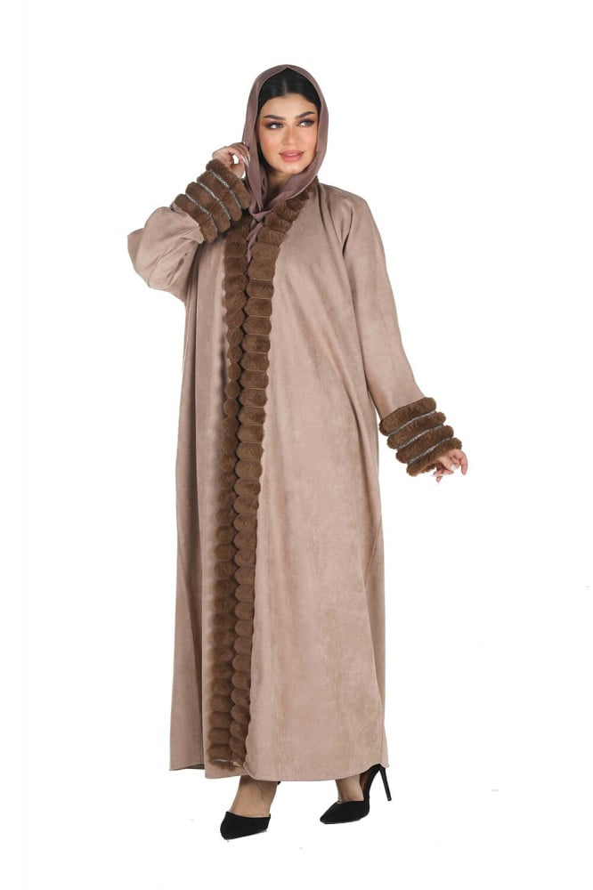 عباية شتوية منسوجة من قماش الشامواه الناعم مع طرحتها