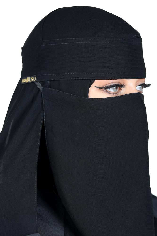 يتميز هذا النقاب بتصميمه الخفيف والمرن الذي يضمن لك الراحة والسهولة في الارتداء. يأتي بلون أسود ملكي وتصميم بسيط، مع ربطة نحيفة تعزز من مظهره الأنيق.