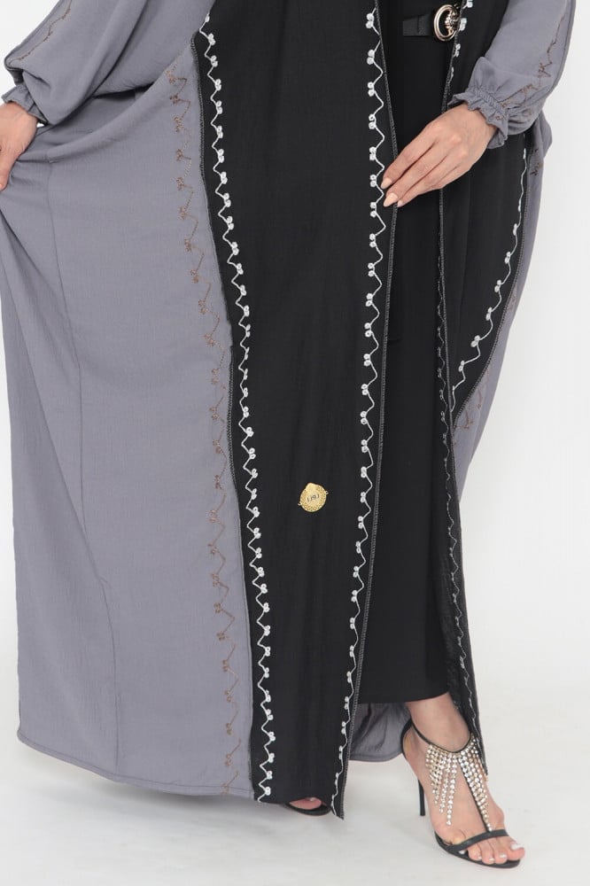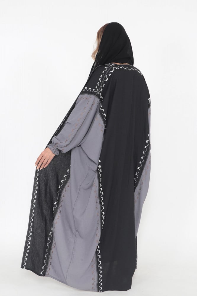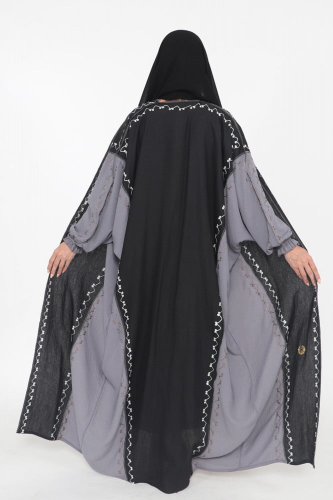 - تم تزويد العباية بتدخيله رصاصي مع تطريز في الأمام والجانبين، وهو ما أضاف لمسة مميزة وفريدة من نوعها للعباية.