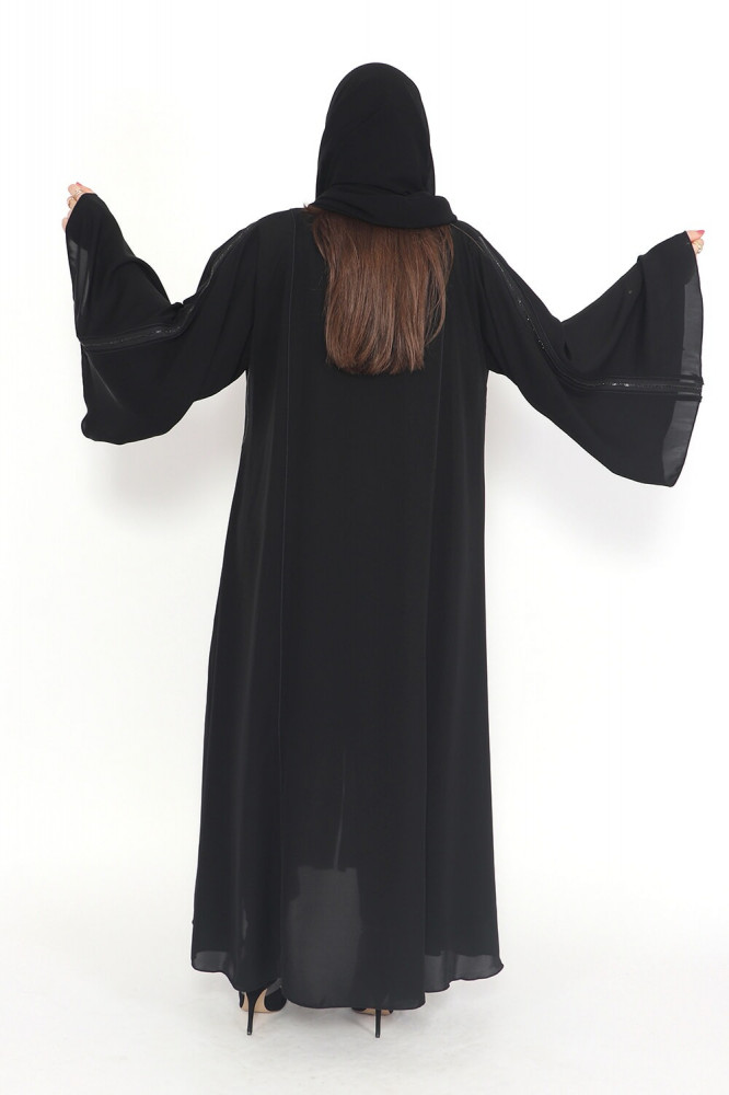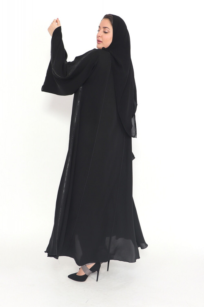 - وجود قيطان كرستال أسود يضيف لمسة من الفخامة والبريق إلى العباية.