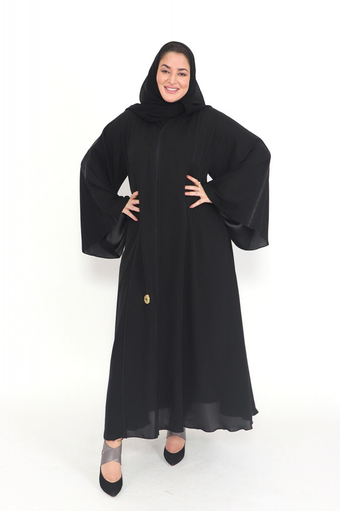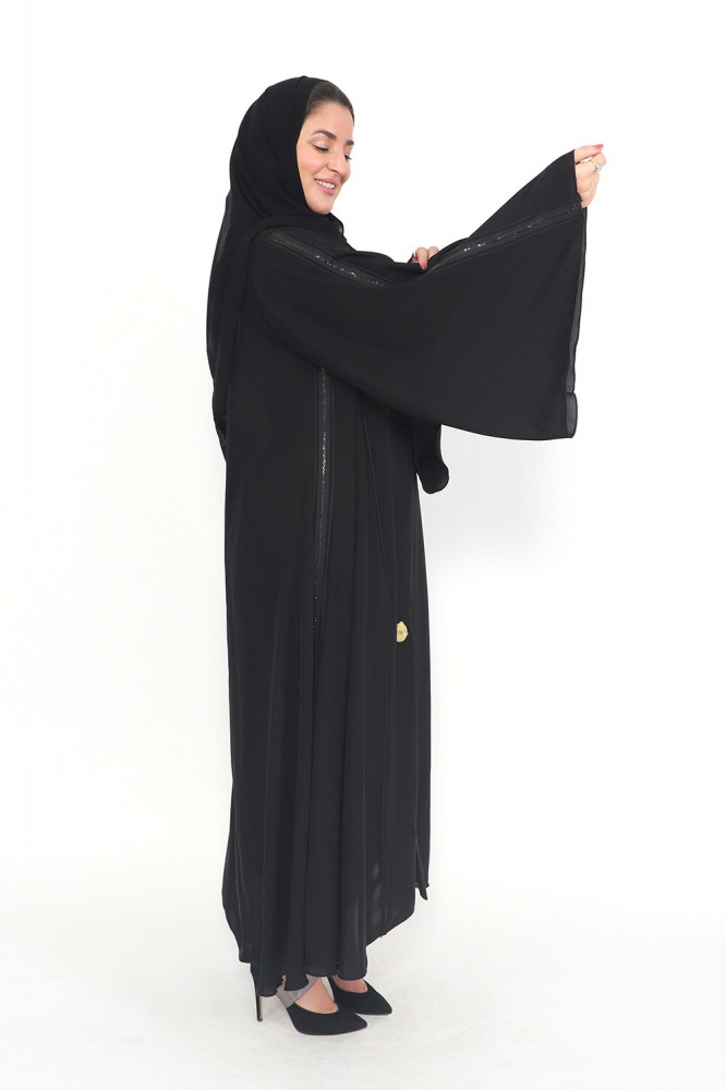 - لون العباية الأسود يعتبر كلاسيكيًا وأنيقًا، مما يسهم في إطلالة جذابة وسهلة التنسيق.