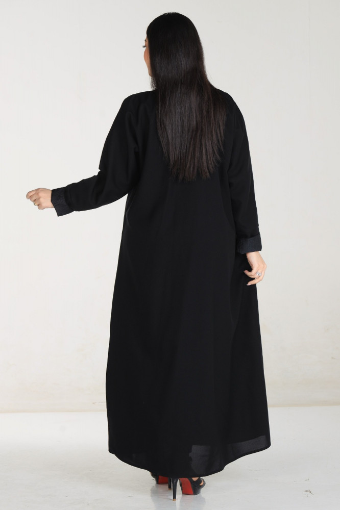 عباية قلاب نصف كلوش من الكريب وشك يدوي في الكم