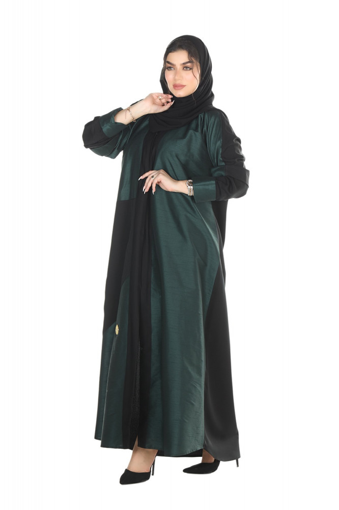 عباية ملونة منسوجة من قماش الصالونا الكوري الأصلي مع طرحتها.