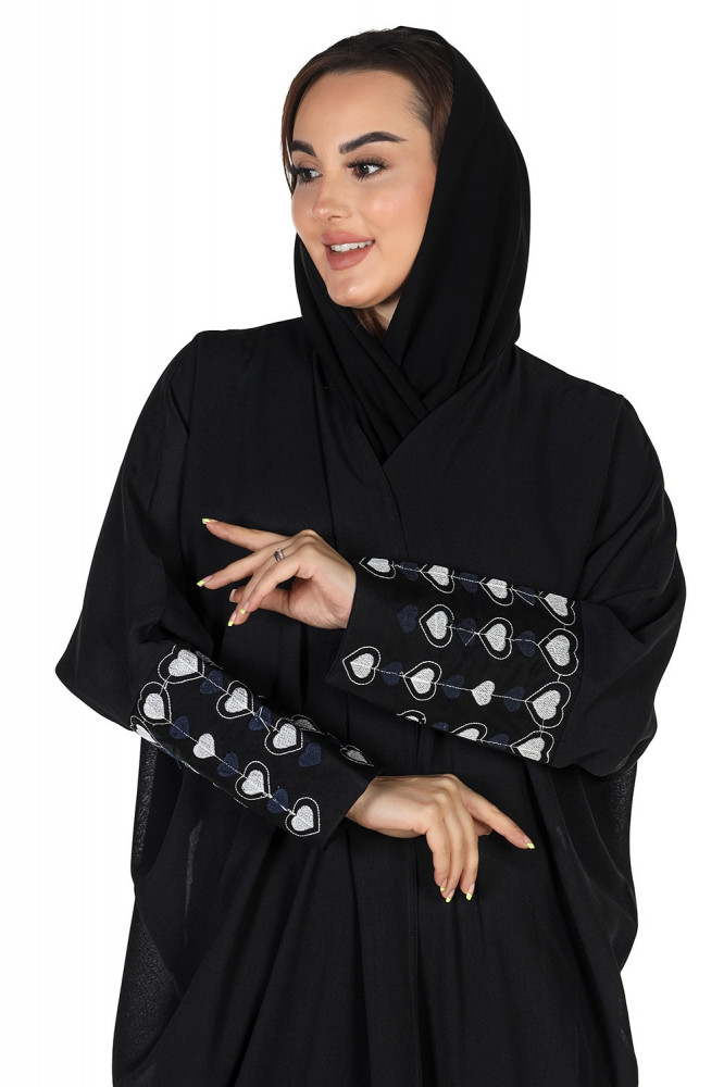 - التطريز: تطريز لون بيج وكحلي مميز على شكل قلوب