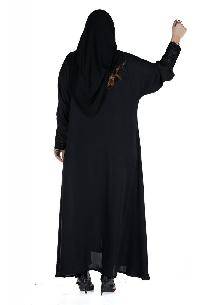 - مزودة بتطريز في الكم يضفي لمسة فنية راقية، مما يبرز العباية بتفاصيل مميزة.