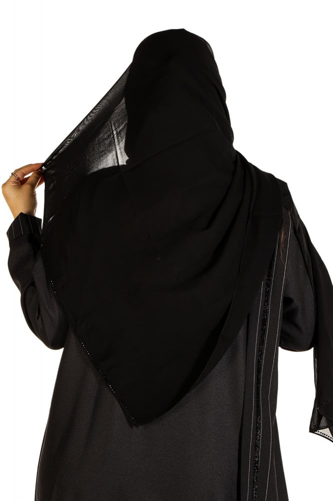 طرحة ناعمة لون أسود على خط كريستال أسود من الطرفين