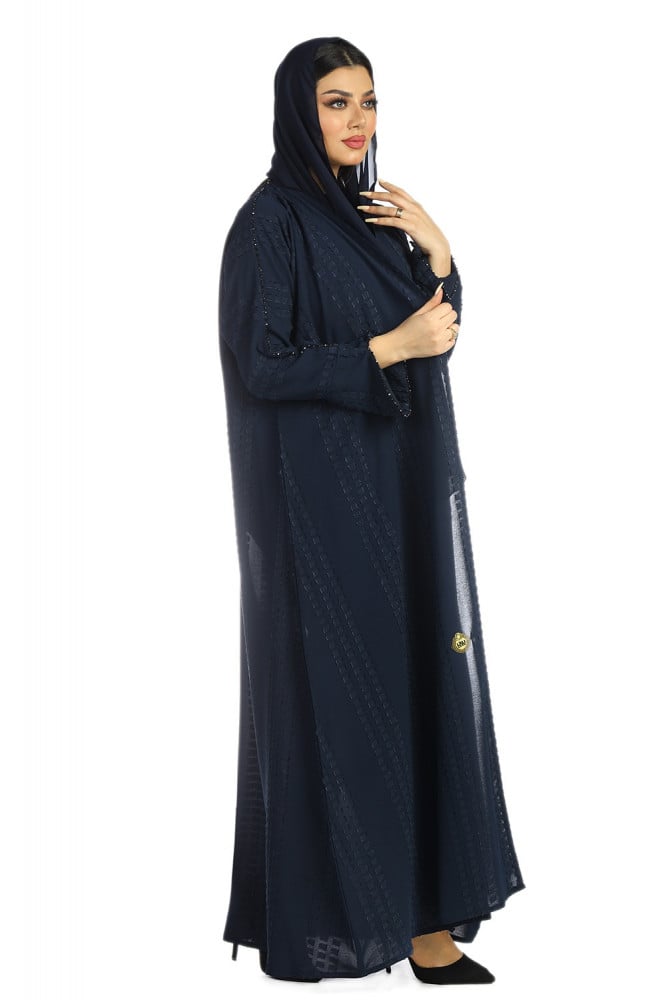 - اللون الكحلي للعباية هو لون جميل وجذاب ويمكن تنسيقه بسهولة مع إكسسوارات مختلفة.