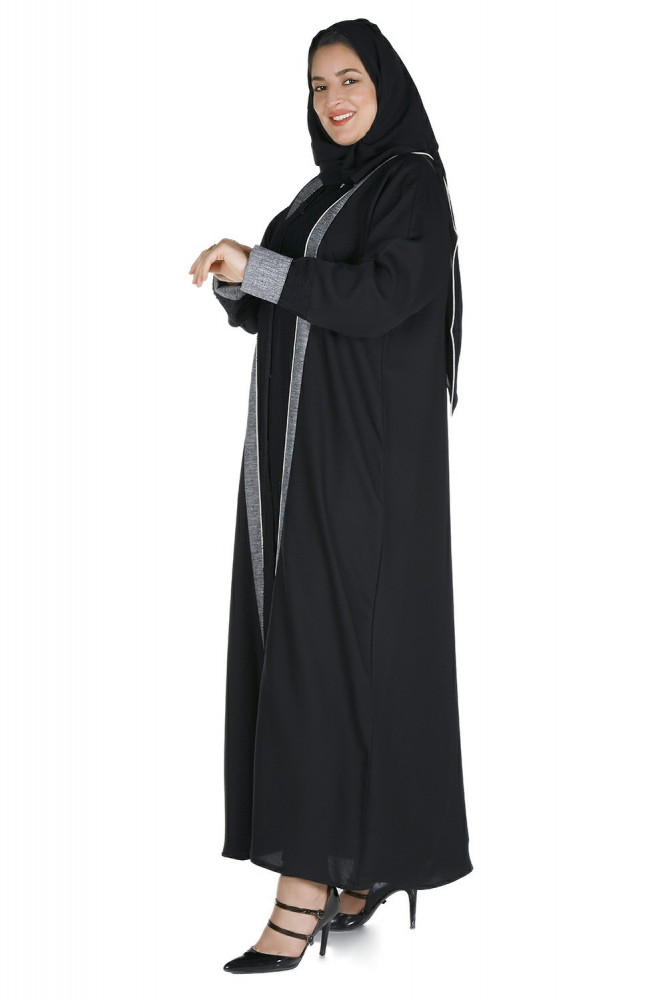 • تدخيلات : تدخيلة في الامام رصاصي مع قماش منقط اسود