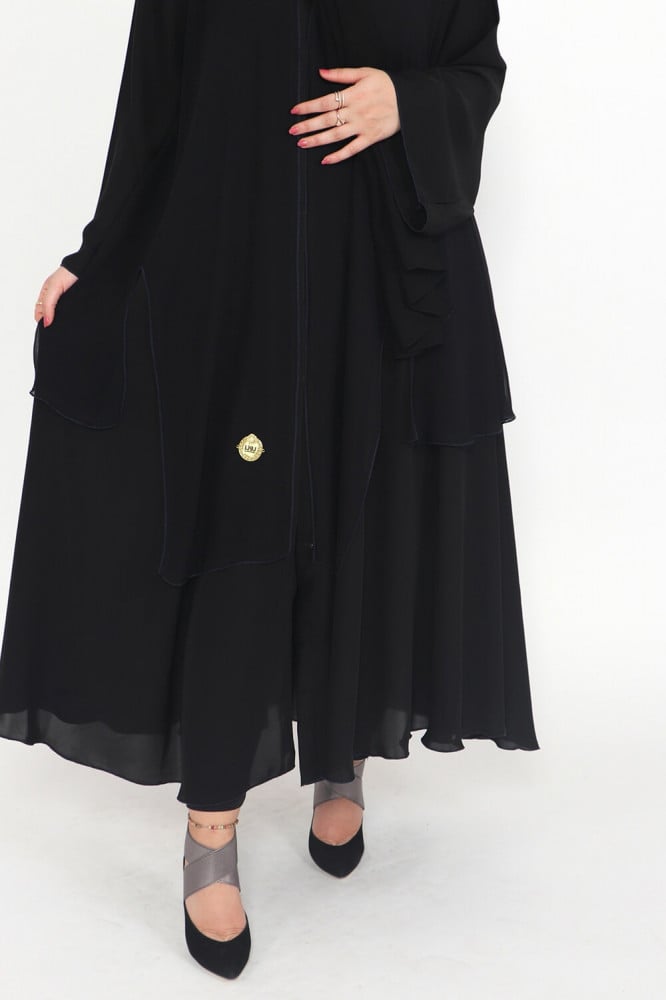 - تم تنفيذ العباية من قماش لمسة حرير الناعم والفاخر.