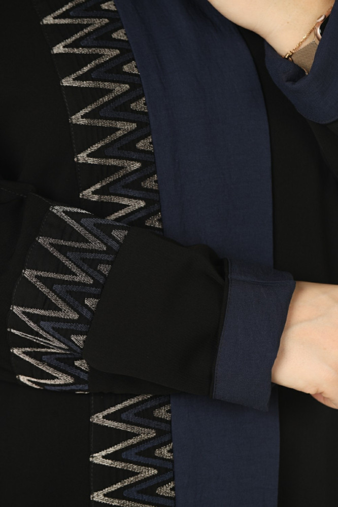 • تطريز : تطريز محدد بقماش كحلي