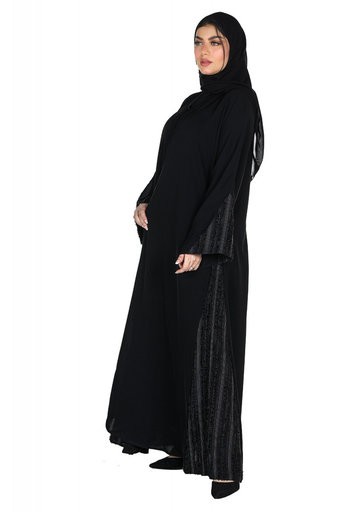 عباية كلوش منسوجة من قماش لمسة حرير مع طرحتها