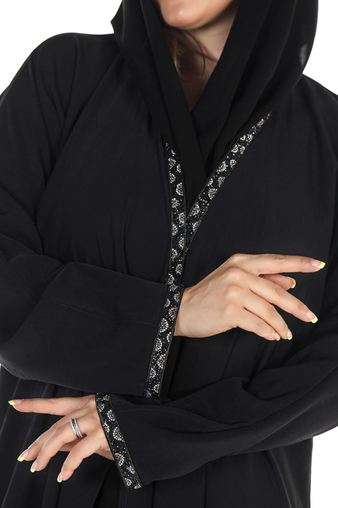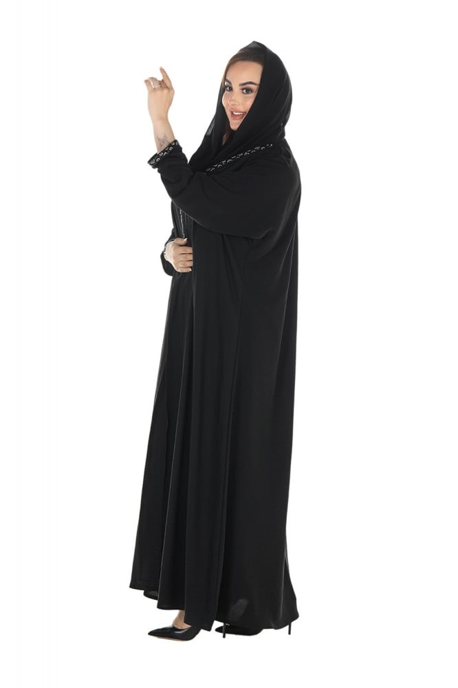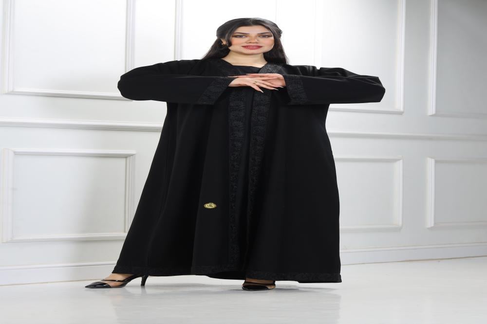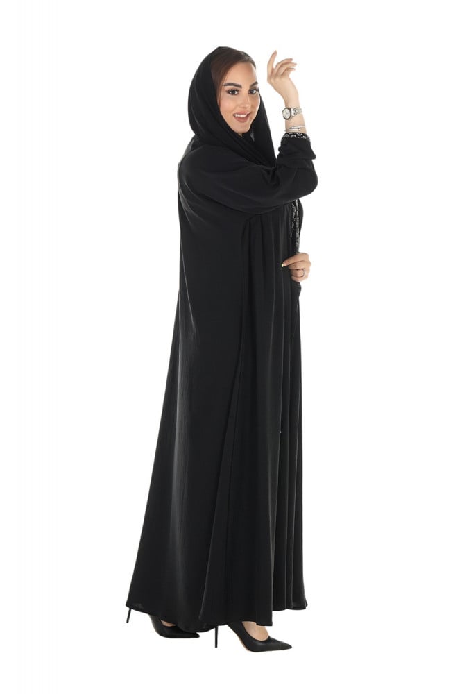 عباية نصف كلوش منسوجة من قماش كريب الفاخر مع طرحتها