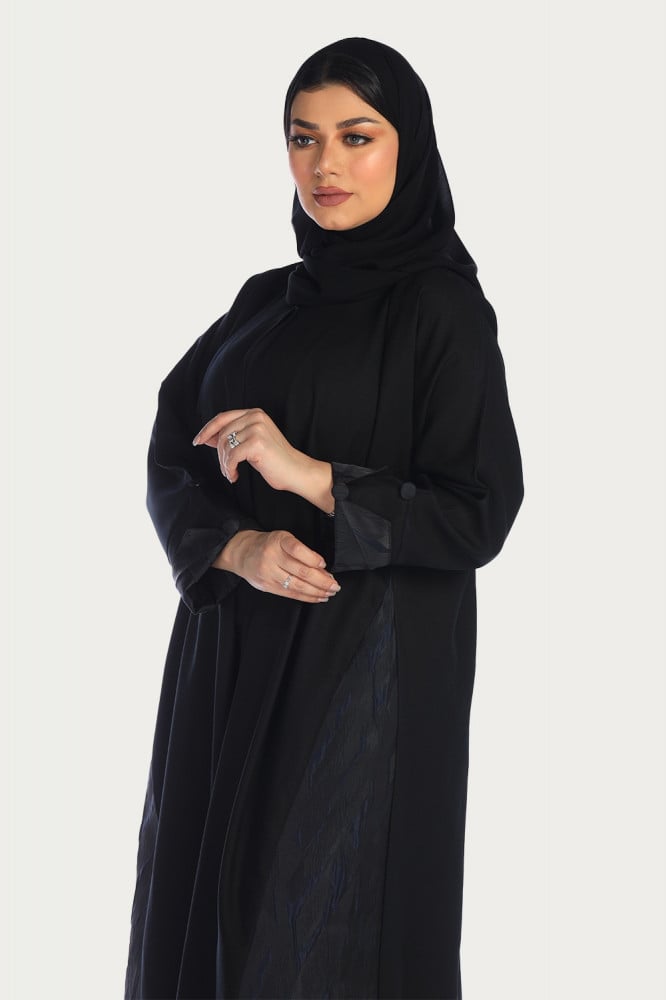 - صنعت من قماش الكريب الانسيابي والناعم على الجسم بالإضافة لوجود قماش التفتة في الجوانب والأكمام.