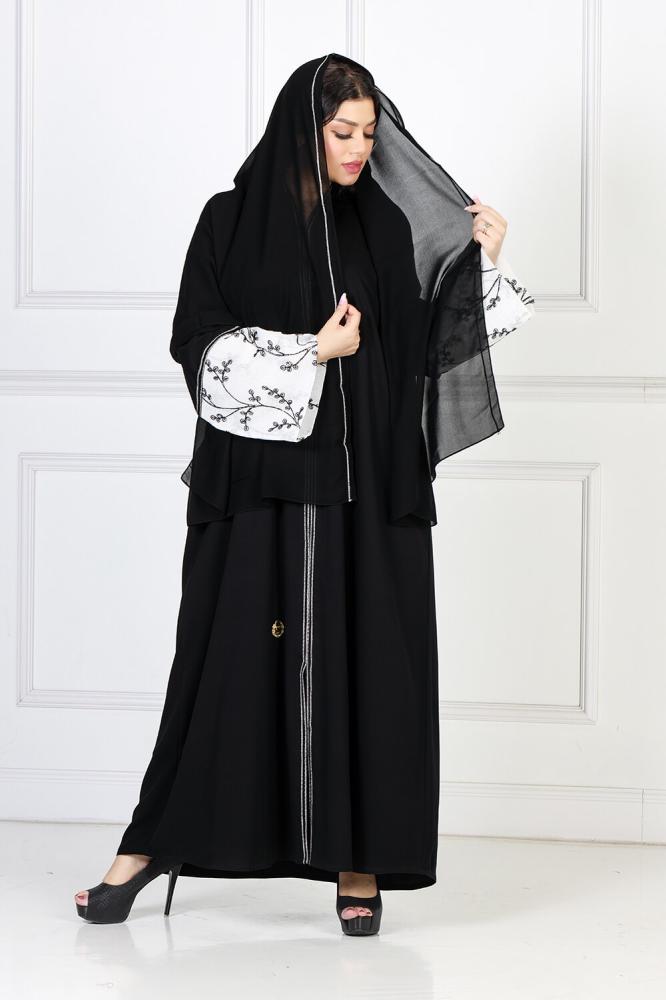 عباية منسوجة من قماش الصالونا الكوري الأصلي مع طرحتها.