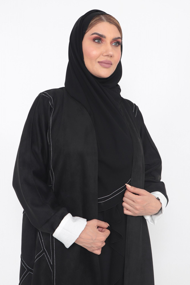 عباية شتوية منسوجة من قماش الشامواه الناعم مع طرحتها