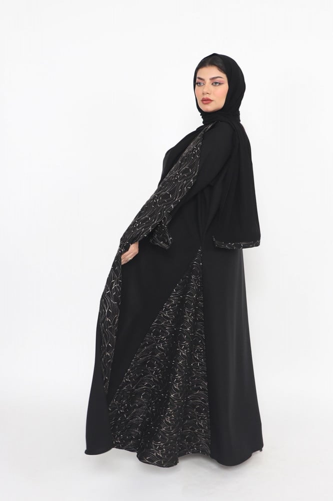 مواصفات عباية كلوش لف سوداء مطرزة بالكم والجوانب