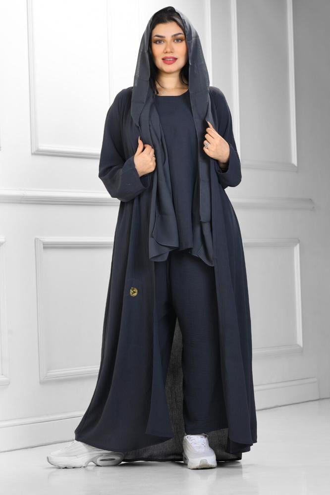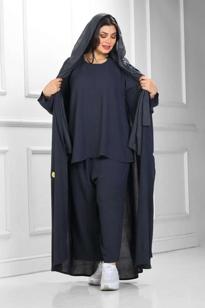 ارتقي بإطلالتك مع هذا الطقم الثلاثي المتكامل الذي يجسد الأناقة العصرية والراحة الفائقة. صُمم هذا الطقم بعناية فائقة ليلبي احتياجات المرأة الباحثة عن إطلالة محتشمة وراقية في آن واحد، سواء للمناسبات الرسمية أو الخروجات اليومية المتميزة.