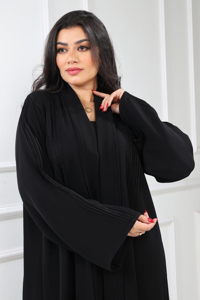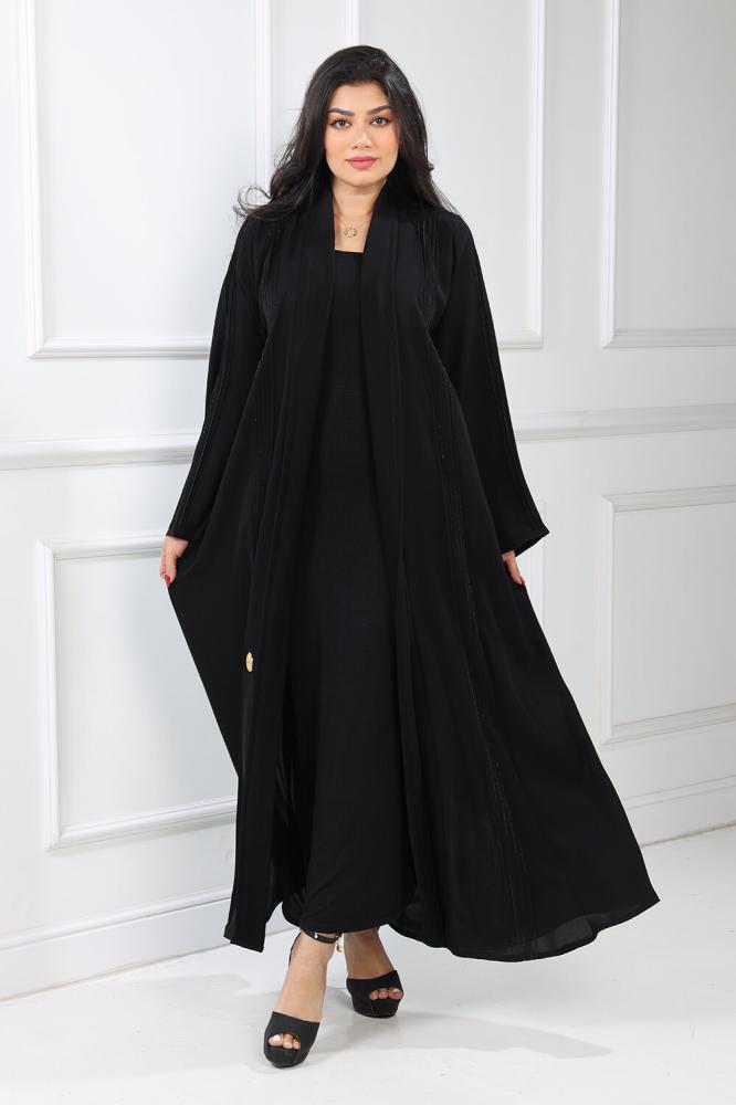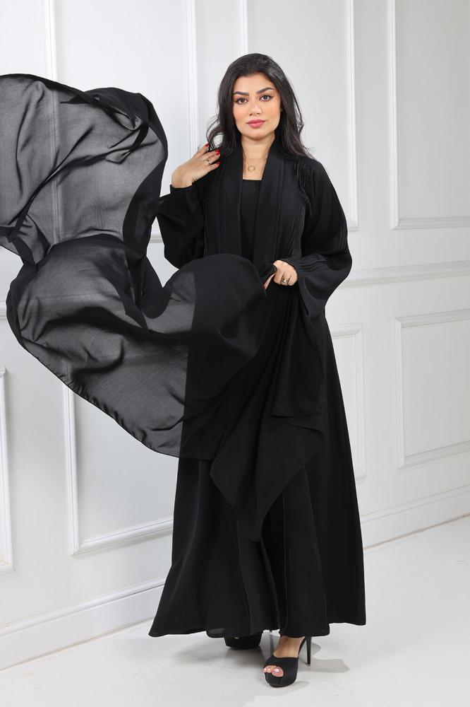 عباية لياقة دبل منسوجة من قماش الكريب الطايح مع طرحتها