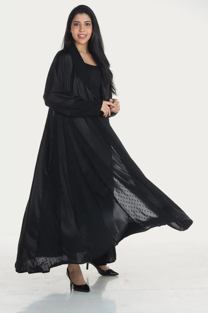 استمتعي بأقوى الخصومات مع عباية سوداء حرير لامع قلاب واحصلي على خصم 32%