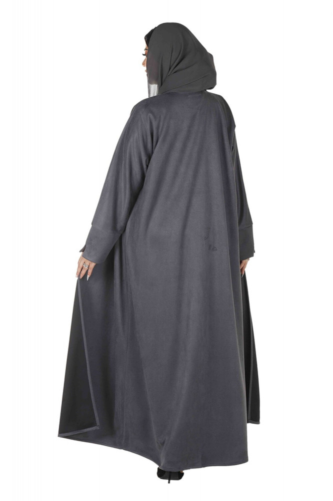 تمتعي بإطلالة أنيقة وملفتة مع عباية رصاصي شتوية بقلاب كوت من الشامواه الناعم من قسم عبايات ملونة مع طرحة مجانية. تتميز هذه العباية بتصميمها الجذاب والمبتكر الذي يضفي عليها لمسة فريدة من الأناقة.