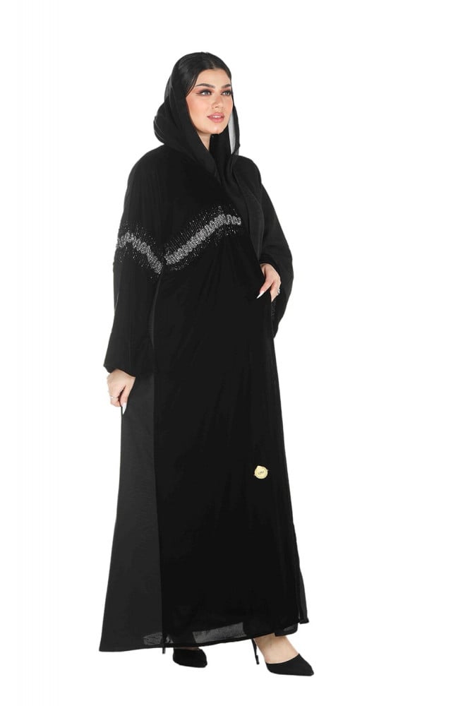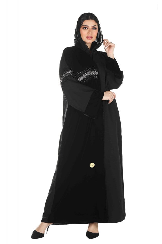 عباية شتوية منسوجة من قماش المخمل والكريب المقلم مع طرحتها