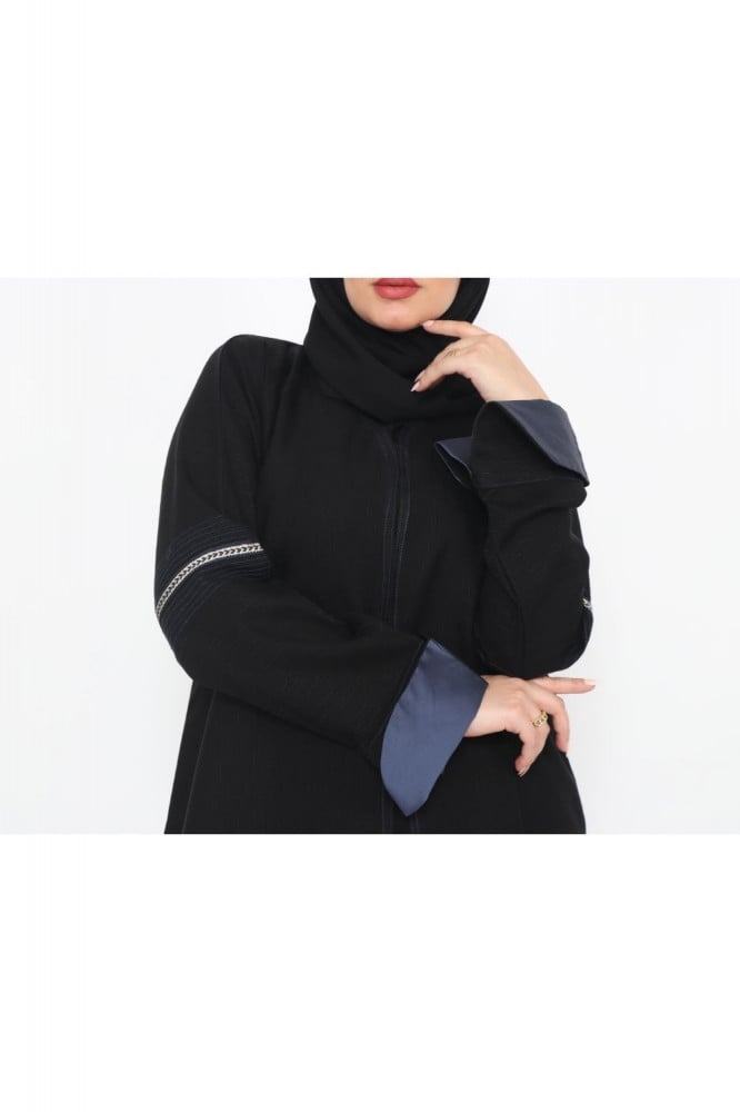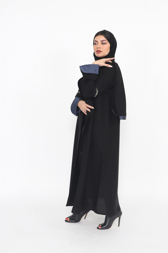 - تتميز عباية كريب اسود بتصميمها الأنيق الرائع مع تدخيله كلفه مغربي محدد بخيوط كحلي التي تعطيها مظهرًا مميزًا.