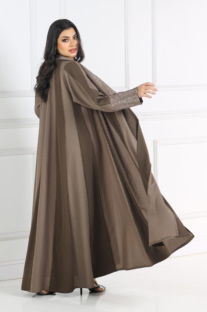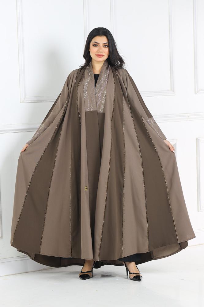 عباية ملونة دبل كلوش منسوجة من قماش الكريب الفاخر مع طرحتها .