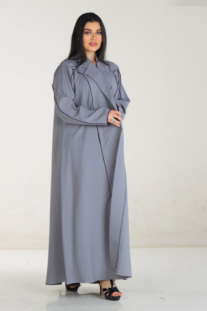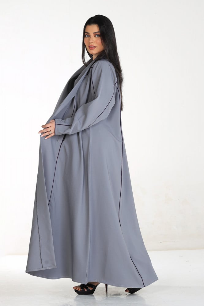 - تأتي هذه العباية باللون الرصاصي الرائع، ما يعطيها مظهرًا عصريًا وأنيقًا في آن واحد، كما تتميز أيضًا بأكمامها العادية المريحة التي تساعد على حركة سهلة ومريحة.