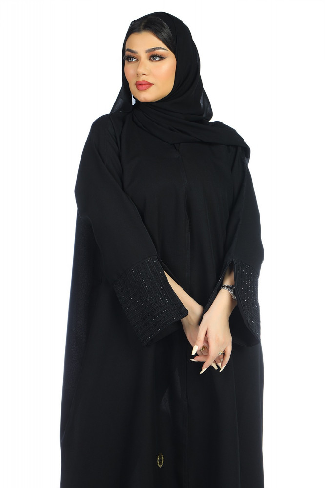 • التطريز : تطريز اسود مع كرستال اسود في الكم
