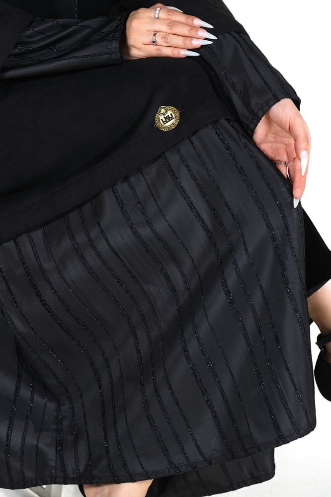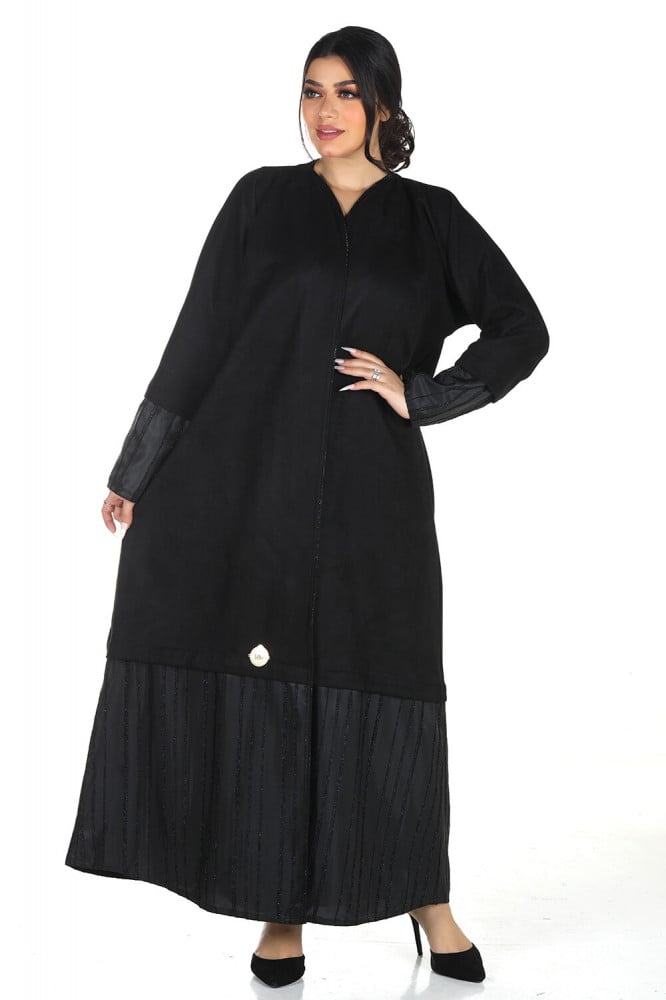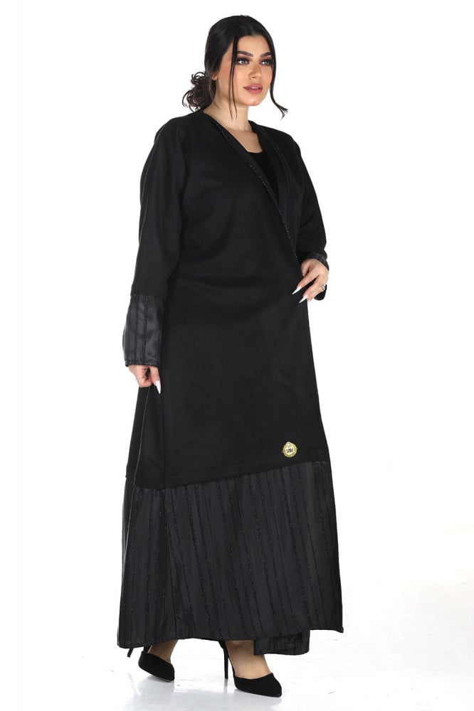 مميزات عباية شتوية سوداء من قماش الشامواه و لمعه في الكم