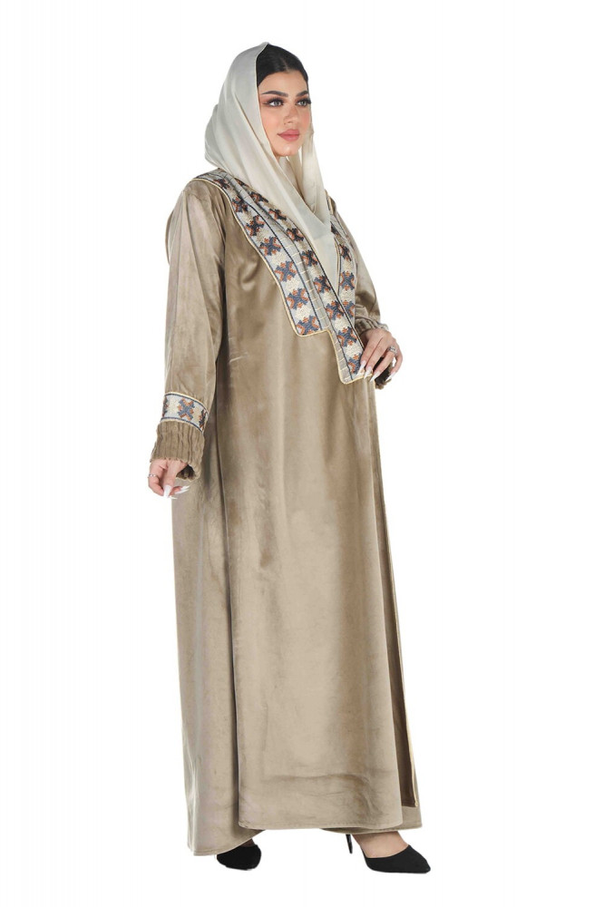 تضفي هذه العباية المميزة داخل قسم العبايات الملونة في المتجر إحساسًا بالثقة والجمال في كل مناسبة ترتديها، وذلك لأن عباية بيج بقماش مخمل تتميز بما يلي: