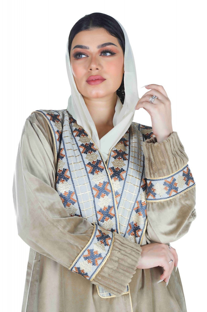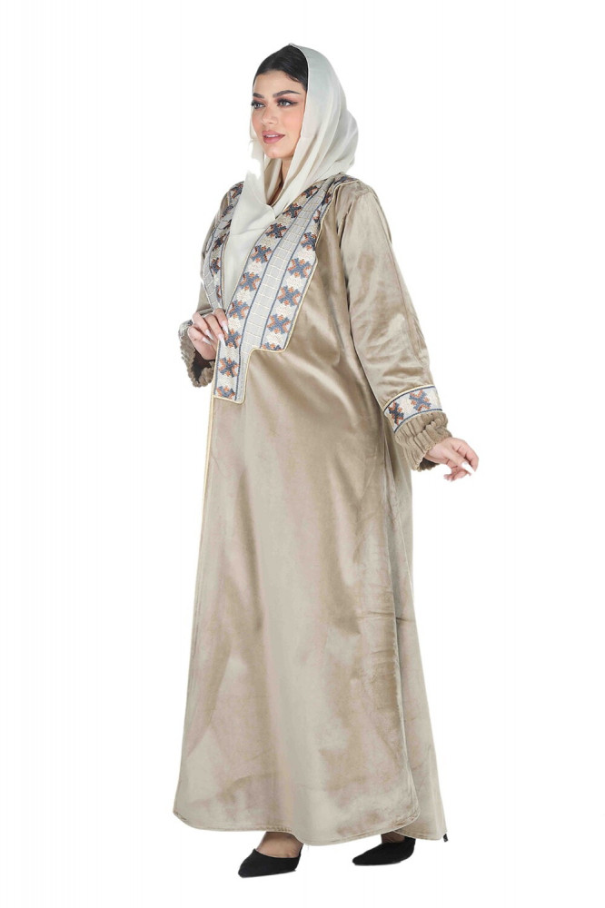 تألقي بالعباية الشتوية باللون البيج في متجر روزا للعبايات بتصميم يجمع بين أناقة القصة والرقي، مع جمال التطريز الفاخر الذي يزينها من الأمام والخلف، تم صناعة هذه العباية من قماش المخمل الذي يتميز بقوام ناعم ومرونة فائقة، مما يوفر لمسة من الراحة عند ارتدائها.