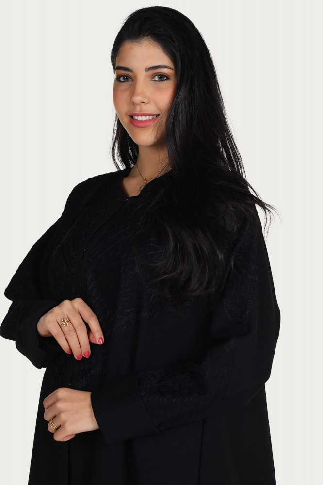 مواصفات أفضل عباية سوداء مطرزة بالكم والامام