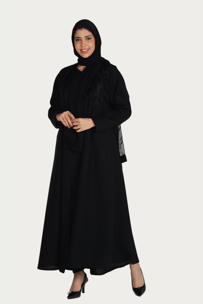 ميزي إطلالتك الآن مع أفضل عباية سوداء المصنوعة من قماش الكريب الفاخر من خلال متجر روزا للعبايات الفاخرة في السعودية، تعد هذه العباية السوداء الكلاسيكية هي الخيار الأمثل لأي مناسبة، وتأتي بالتطريز الأسود المفصل بشكل جميل على الجهة الأمامية والأكمام مع طرحة مميزة مجانية.