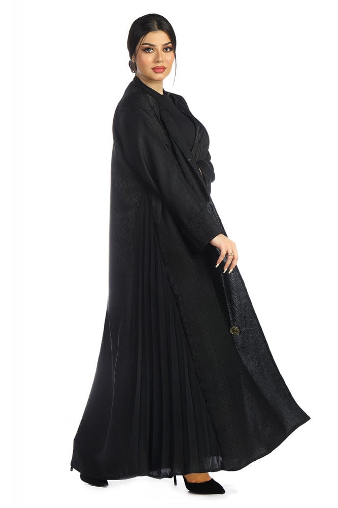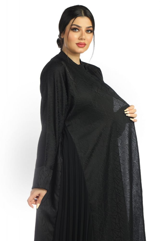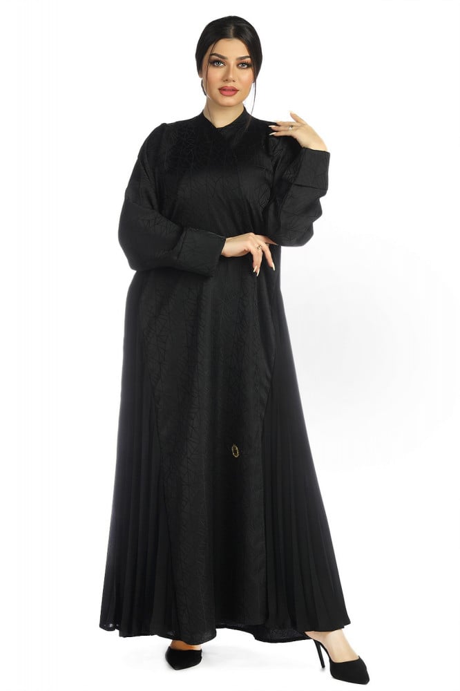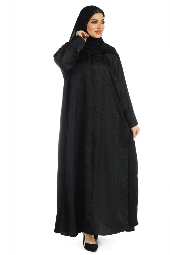 - العباية مصنوعة من قماش الكريب المشجر اللامع الذي يمنحها مظهرًا فاخرًا وجاذبية خاصة.