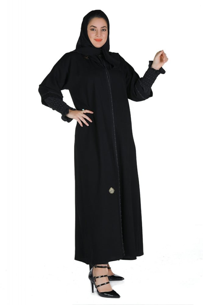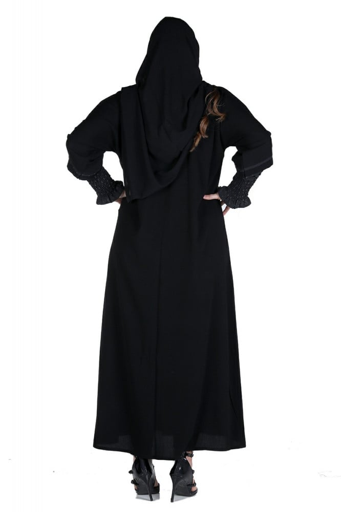 عباية منسوجة من الكريب المقلم مع طرحتها