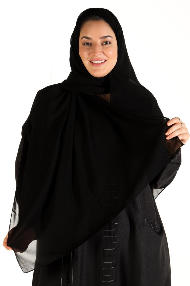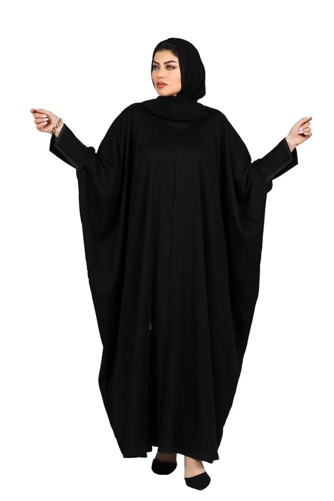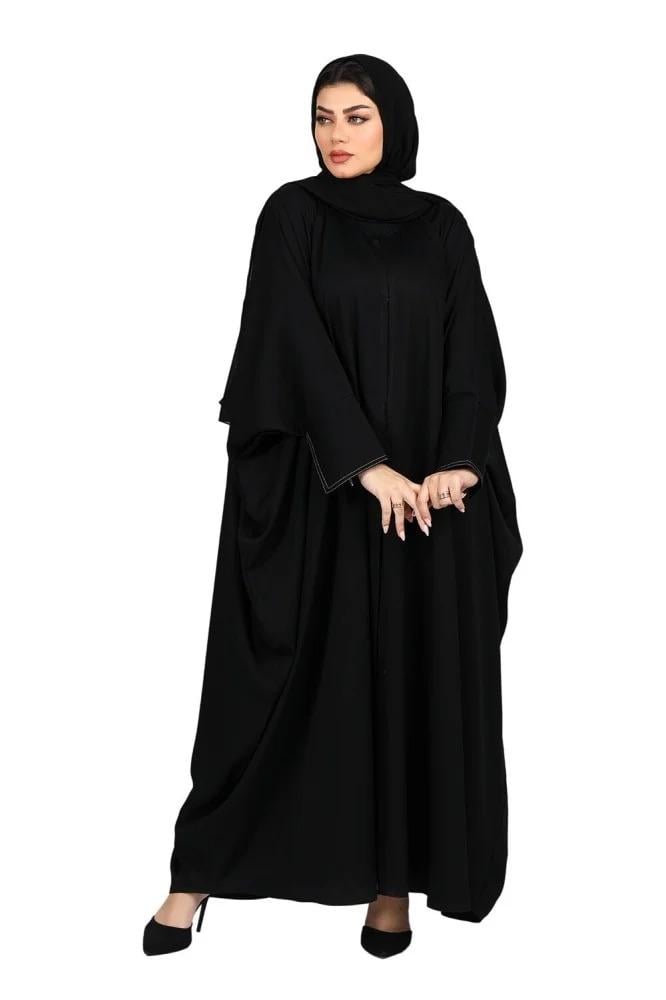2. عباية واسعة سوداء بأسورة في الكم من القماش الصالونا مع طرحة مجانية